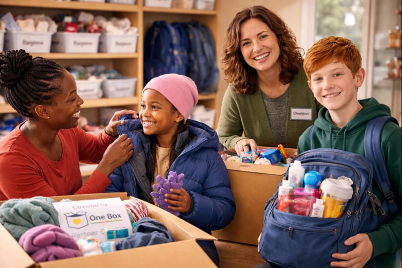 Pick a box and we pack essentials, deliver through partners, and confirm handoff.